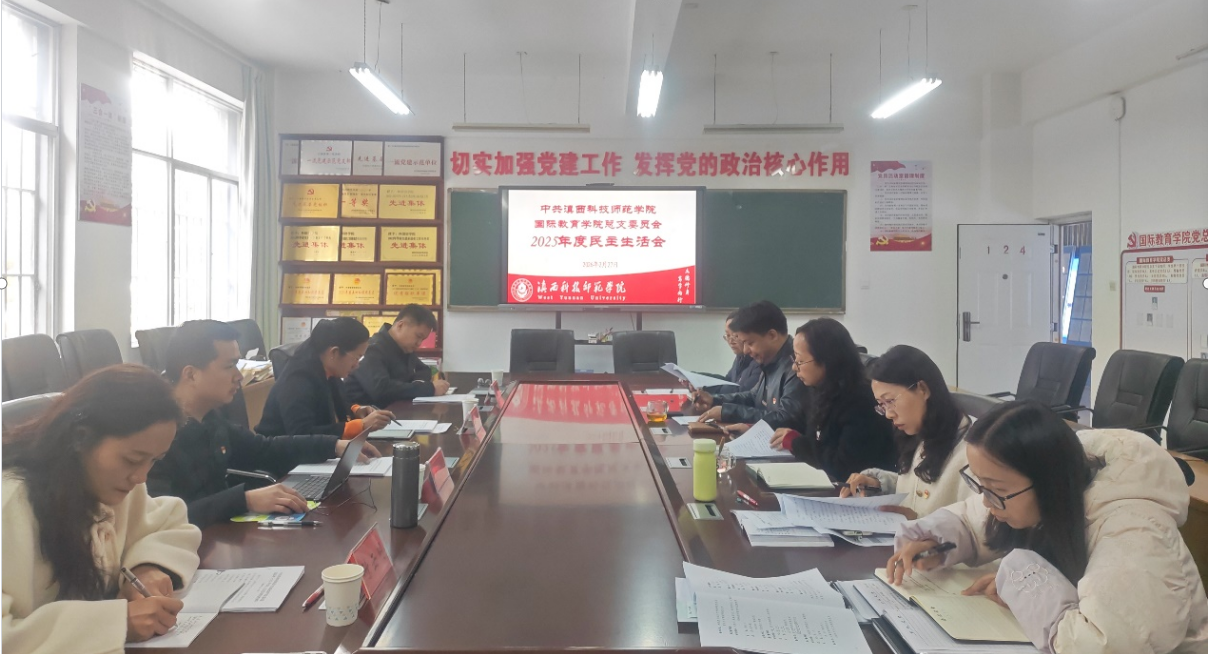 2月27日,国际教育学院党总支领导班子召开2025年度民主生活会,校党委委员、副校长,党委第六督导组带队领导梅英到会指导。