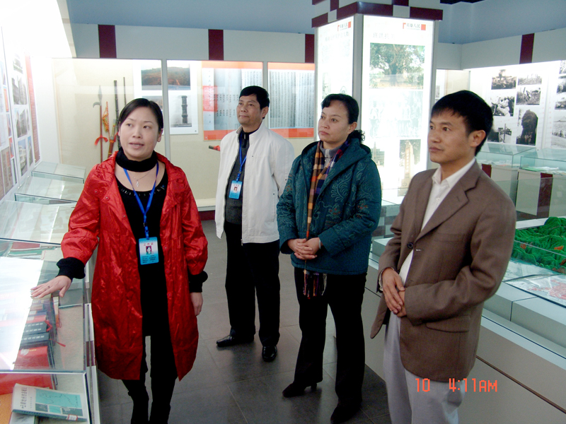 揭牌仪式后那校长一行在档案局(馆)领导陪同下参观了爱国主义教育基地展室。